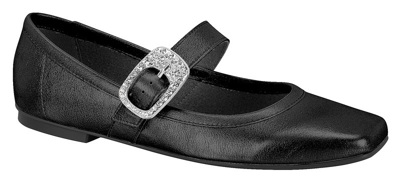 Mary Jane com fivela em brilho: um clássico repaginado. A tira no peito do pé garante ar retrô, enquanto a fivela cravejada traz o toque glam que transforma até o combo jeans e camisa branca em um look fashionista. O jeitinho lady like veio com força.