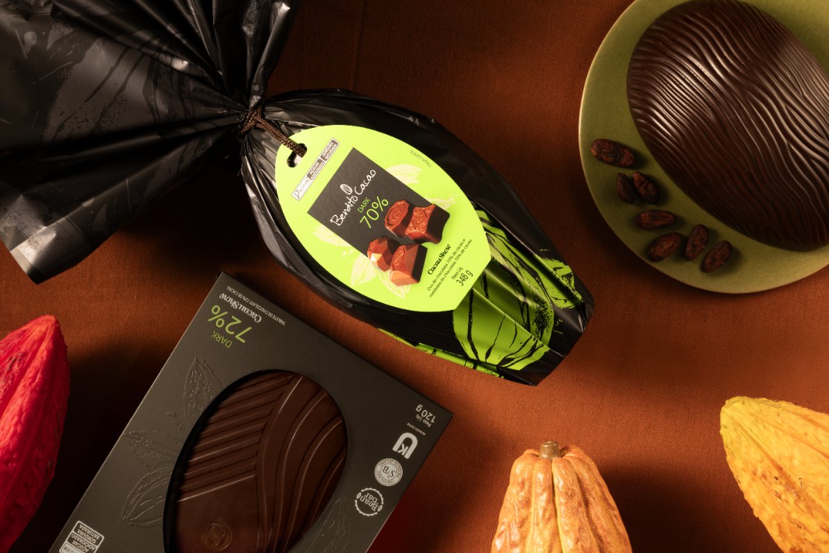 Para os adeptos de chocolates intensos e com apelo mais funcional, o Ovo Bendito Cacao 70% (348 g) ganha destaque entre os consumidores que apreciam maior concentração de cacau. Já o Tablete Bendito Cacao Vegano 72% (120 g) é uma opção sem ingredientes de origem animal, ampliando as possibilidades para quem segue dieta vegana ou busca alternativas plant-based. O produto ainda conta com os selos Kosher e da Sociedade Vegetariana Brasileira (SVB), que certificam padrões específicos de consumo e reforçam o compromisso da marca em atender diferentes estilos de vida.