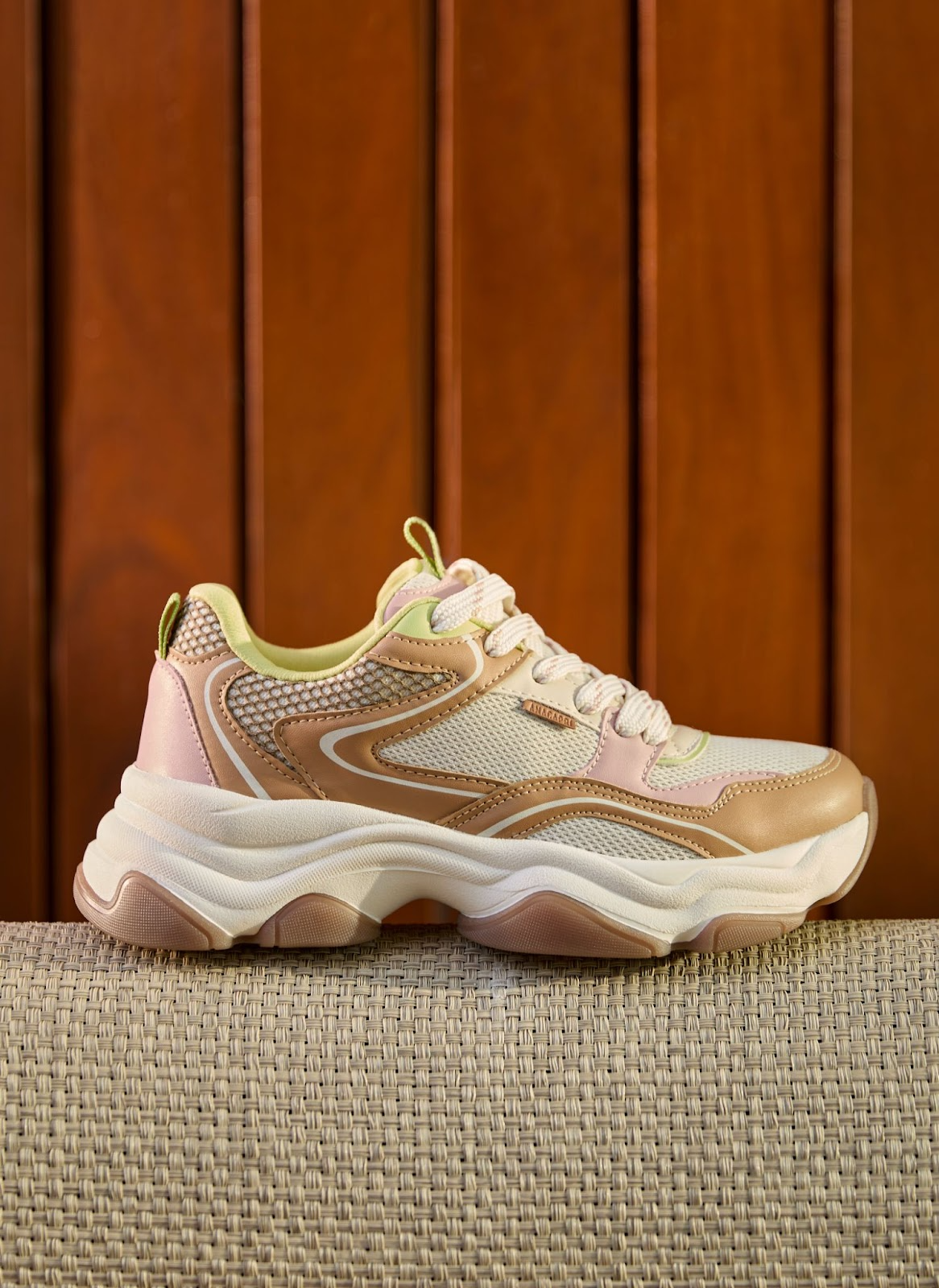 Entre as leituras dessa tendência, o tênis Alexa, lançamento da Anacapri, aparece como destaque da temporada. O modelo traduz a esportividade robusta em um tênis de linhas orgânicas, solado mais alto e mix de materiais como mesh e sintético, que garantem sofisticação esportiva e praticidade.