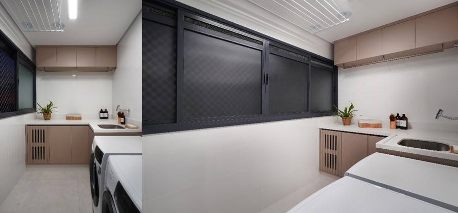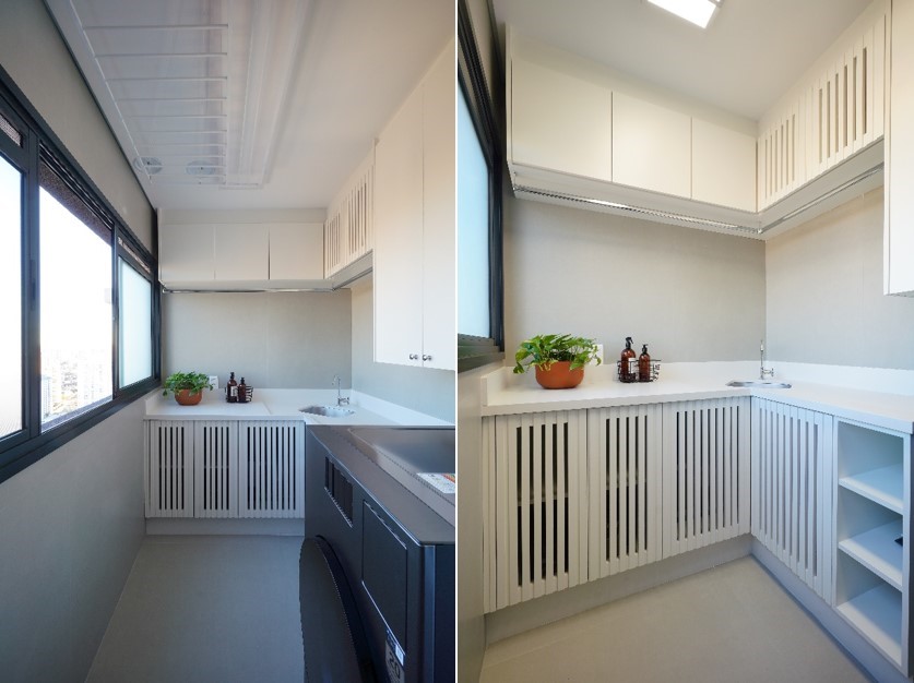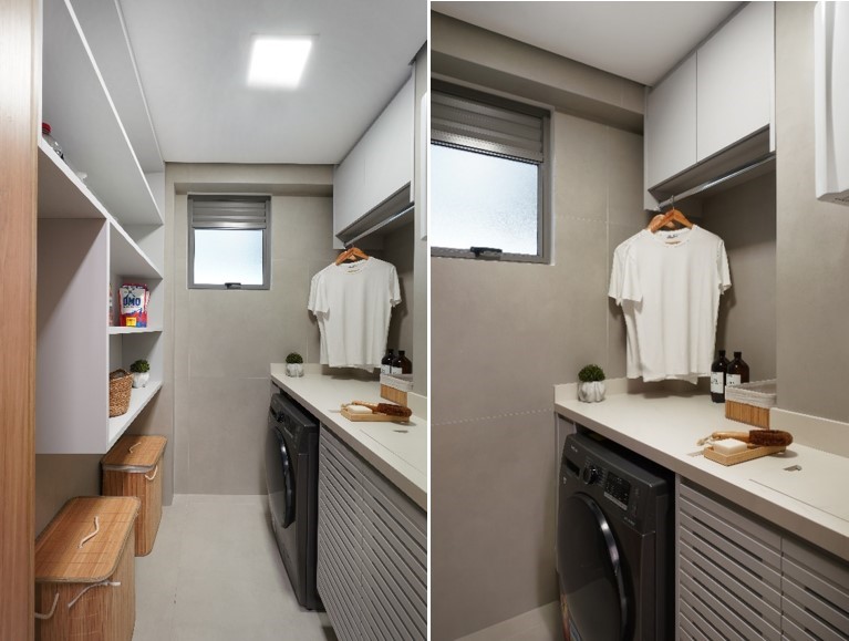 A arquiteta Rosangela Pena afirma que a área disponível não impede o morador de usufruir de um ambiente bem pensado para realizar as atividades domésticas. “Na minha visão, os moradores precisam de conforto para sentirem-se bem quando vão cuidar de suas roupas ou realizar a faxina em casa. Por isso eu digo que a área de serviço precisa ser funcional”, argumenta. Ainda segundo ela, um espaço compacto não é impeditivo. “Muito pelo contrário, o projeto torna-se ainda mais fundamental”, complementa.
