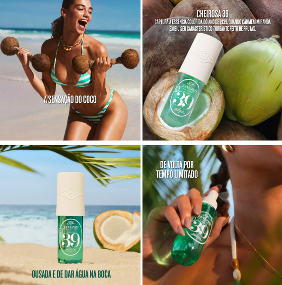 Cheirosa 39, a icônica fragrância de coco de Sol de Janeiro, está de volta ao Brasil por tempo limitado. O body mist, que como os demais da marca leva o nome de um ano marcante da história do país, captura a essência vibrante e colorida de 1939 — o ano em que Carmen Miranda encantou o mundo com seu turbante de frutas, tornando-se símbolo de alegria, autenticidade e expressão tropical, e redefinindo a imagem do Brasil no cenário internacional.