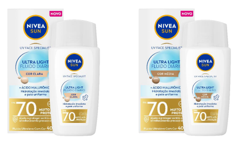 NIVEA SUN Ultra Light Fluido Diário FPS70 com cor clara e média