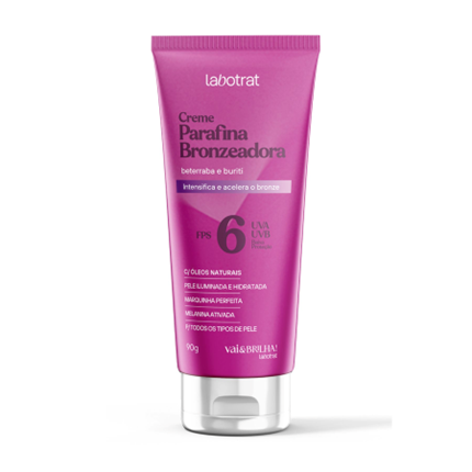 - Creme Parafina Bronzeadora Beterraba e Buriti com FPS6 – 90g – R$ 40,19: Estimula a produção de melanina e promove o bronze mais rápido com aspecto natural, uniforme e duradouro.