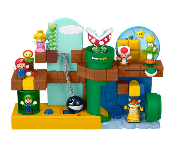 Little People My Mario convida os pequenos fãs a explorar e brincar juntos. A linha foi desenvolvida com o objetivo de estimular ainda mais o desenvolvimento da coordenação motora fina e da imaginação das crianças pequenas, além de fortalecer a conexão entre pais e filhos por meio do brincar, permitindo que adultos compartilhem a nostalgia das aventuras clássicas do universo Nintendo com os pequenos. A linha Fisher-Price Little People My Mario inclui: