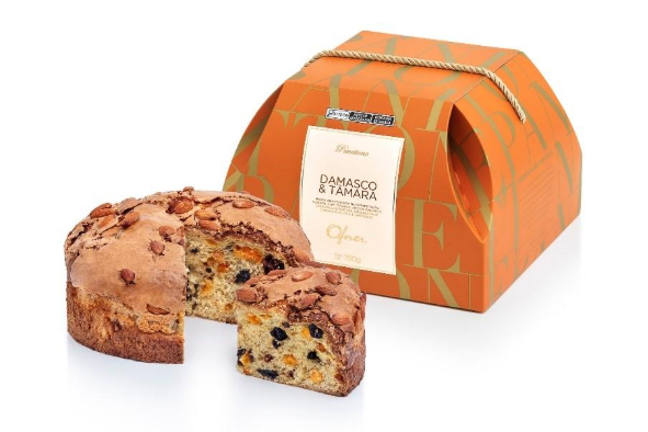 Receita tradicional italiana com massa ultra macia e amanteigada, elaborada artesanalmente com tripla fermentação 100% natural, tâmara, ameixa, damasco e laranja cristalizada, e coberto com castanha-de-caju açucarada e amêndoas inteiras.