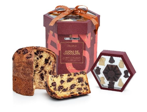 - Panettone Champagne (1kg) – Resultado da parceria com o Le Cordon Bleu, combina uvas passas brancas maceradas em champanhe e um sachê de cristais borbulhantes de açúcar, que criam uma experiência sensorial única e vibrante.
