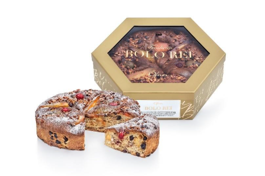 Bolo artesanal, receita típica portuguesa feita com massa de tripla fermentação 100% natural e uma combinação de frutas cristalizadas (uvas-passas, amêndoas e nozes). Decorado com frutas glaceadas (cereja, cidra, figo, laranja, castanha-de-caju e mamão). Acompanha sachê de açúcar de confeiteiro com toque de canela para finalizar em casa.